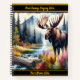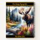 A solitary moose stands proudly beside a shimmering stream, surrounded by colorful autumn foliage and towering mountains, evoking a serene and picturesque wilderness experience.