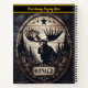 Admire the striking silhouette of a moose set against a beautifully crafted wooden background, surrounded by a serene forest atmosphere, showcasing its grandeur and natural beauty.
