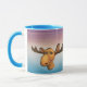 Talking Moose mug with blue and purple sea background.
