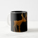 "Moose on the Loose" quote with a moose cartoon image on black and white mug
