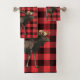 Moose Red Black Plaid Pattern Bath Towel Set