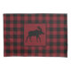 Linda Baysinger Peck’s painting of a black silhouette of a bull moose, on red background, with red and black checks on both sides. Image © Linda Baysinger Peck All Rights Reserved