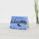 A watercolor and ink winter landscape of a Moose foraging in a northern pond under the starry, evening sky adorns this customizable card!