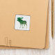 This design is the outline of a moose with a green to beige color gradient and the silhouette of a tree inside.