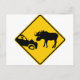 International style road and highway sign advising that the moose will win any confrontation with a car. Sign was reported seen in Gros Morne National Park, Newfoundland, Canada.