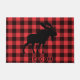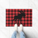 Red black plaid doormat with walking moose silhouette welcome doormat. For your cabin or cottage.