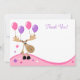 Cute and fun flat thank you card featuring a cartoon moose with pink and purple balloons tied to the horns and surrounded by stars. Matches the same style girls birthday party invitation. For custom requests or help with customizing please use the store contact link.