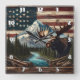 Moose With Mountains and Flag Background Square Wall Clock