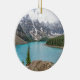 Beautiful Moraine Lake after a summer storm with clouds still hanging on the peaks of the surrounding mountains.