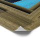 This design features a faux brown wooden frame 6 pane window opening to view Moraine Lake near Lake Louise in Canada.