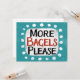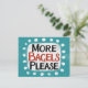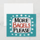 "More Bagels Please" is a fun text design with a white accent shape surrounded by white whimsical textured dots.