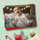 More cheer this year! If your Christmas is much merrier this year than before, this is the perfect holiday birth announcement card for you. With one photo and fun playful text on the front, it's a great way to feature your family and send holiday greetings. There is plenty of room for custom text and the red backer is dotted with matching stars and dots. The back also has room for a second photo and introduction to your new baby. Find coordinating pieces and other colors and styles in the collection by Lea Delaveris Design. This card is also available as a digital holiday birth announcement download.
