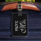 This classic black luggage tag is decorated with More Mrs. written on the front, and all your personal information on the back, for your second piece of luggage. This coordinates perfectly with the Classy Mrs. Black Luggage Tag for your first piece of luggage, and the Classy Mr. Black Luggage Tag, for his luggage.