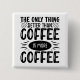 Coffee lovers will love this black text design on coffee themed T-shirts, mugs, bags, stickers and other items that reads The Only Thing Better Than Coffee is More Coffee!