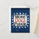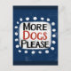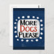 "More Dogs Please" is a cute text design in blue with black and red text, along with a white accent shape and white textured whimsical dots surrounding it.