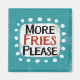 "More Fries Please" is a fun text design with a white accent shape surrounded by white whimsical textured dots.