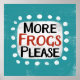 "More Frogs Please" is a fun text design with a white accent shape surrounded by white whimsical textured dots.