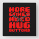 MORE GAMES NEED HUG BUTTONS SQUARE WALL CLOCK