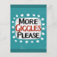 "More Giggles Please" is a fun text design with a white accent shape surrounded by white whimsical textured dots.