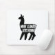 More llamas! Less drama! Black and white design. Comic style text inside a silhouette of a llama.
