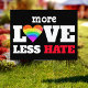 More Love Less Hate Bold Rainbow Heart on Black Sign