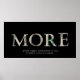 The “More” poster shows the letters "M" "O" "R" "E" spelled out as if someone cut the letters out of a one dollar bill. There is also a caption below that reads: "Even when you have it all. There's always more." The phrase “More” was used in a recent blockbuster movie "Wallstreet: Money Never Sleeps" staring Shia Labeouf. As Shia Labeouf’s character asks a very wealthy businessman what his number is that he will be satisfied with, he replies with one word: “MORE”. This poster is great for young entrepreneurs, or just anyone that loves money.