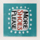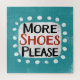 "More Shoes Please" is a fun text design with a white accent shape surrounded by white whimsical textured dots.