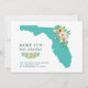 More Sun No Snow Florida Map New Address Moving Announcement Card... A turquoise map of Florida is embellished with a beautiful cascade of tropical pink and coral hibiscus flowers on our upbeat "More Sun! No Snow!" change of address flat card. Florida was named by Ponce de Leon in the early 1500s for the abundance of colorful floral varieties represented in the Sunshine State. All of the example text on front and back of the card can be easily revised with your own greeting and contact details using the personalization template.