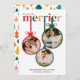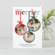 The card's unique design features three custom photos, each placed inside a brightly colored Christmas ornament. These ornaments are beautifully arranged against a bold and festive backdrop, creating a fun and eye-catching way to share your baby news. Whether you choose to include an ultrasound photo, a family picture, or a creative pregnancy reveal shot, these ornaments turn your special moments into a playful holiday display. The headline "The More the Merrier" brings the message home, letting everyone know your family is growing and your hearts are fuller than ever.