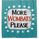 "More Wombats Please" is a fun text design with a white accent shape surrounded by white whimsical textured dots.