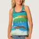 Women's All-Over Print Racerback Tank Top, White Piping, S