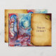 Colorful ,whimsical ,romantic, symbolist contemporary figurative watercolor painting for a spiritual,mystic legend figure in soft blue,pink ,red, purple,violet ,white colors by Alessandro Lumini 1988 . Cool and artistic design design easy to customize as a wedding ceremony, nuptial announcement card ,place cards ,save-the-date , thank you cards,bridal showers, sweet 16,quinceanera birthday parties,romantic engagement showers, christmas,office holiday party ,family reunions ,new year's day eve celebrations,St Patrick's day,carnival ,Fat Tuesday parties, anniversaries,gatherings,school graduations,concert,recital or just about any event you wish! .Morgan le Fay, alternatively known as Morgane, Morgaine, Morgana and other variants, is a powerful sorceress of Avalon in the Arthurian legend.Avalon (probably from the Welsh Celtic word afal, meaning apple; is a legendary island featured in the Arthurian legend, famous for its beautiful apples. It first appears in Geoffrey of Monmouth's 1136 pseudohistorical account "The History of the Kings of Britain" as the place where King Arthur's sword Caliburn (Excalibur) was forged and later where Arthur is taken to recover from his wounds after the Battle of Camlann. As an "Isle of the Blessed" Avalon has parallels elsewhere in Indo-European mythology, in particular the Irish Tír na nÓg and the Greek Hesperides, also noted for its apples. Avalon was associated from an early date with immortal beings such as Morgan le Fay.