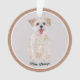An ornament with a cute image of a Morkie dog. The background, image and text can be personalized. Original artwork by W.B.
