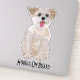 A sticker with a cute image of a Morkie dog. The image and text can be pesonalized. Original artwork by W.B.