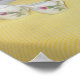 Bubba kitty in a teddy bear bathrobe, at a little table with a cheerful yellow tablecloth. He is having coffee (or tea) from a miniature porcelain set. This can be customized. It might be cute in a breakfast area or in a child's room or classroom.