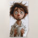A whimsical and relatable illustration of a disheveled man in a bathrobe clutching a cup of coffee with wide, tired eyes. His messy hair and bewildered expression perfectly capture the chaos of early mornings before caffeine takes effect.