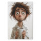 A whimsical and relatable illustration of a disheveled man in a bathrobe clutching a cup of coffee with wide, tired eyes. His messy hair and bewildered expression perfectly capture the chaos of early mornings before caffeine takes effect.