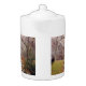 It was great to be able to be creative with my own pictures, and add fonts and other options Zazzle makes available to make my gift personal. The teapot became a special anniversary keepsake my brother and his wife raved about. Just the way I ordered it. I probably should have made the lettering a little darker, or white to stand out against the sky in the photos, but it turned out well.
