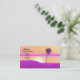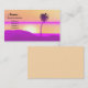 Business cards with my original computer design of a sunny gold, purple and pink palm tree on an island.