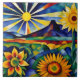Colorful Morning Sunflowers With Sunburst and Mountains Artwork.