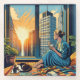 Morning Time in the City | Woman Reflecting Glass Coaster