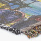 A quality printed throw has its advantages. This is a much finer weave throw than its loopier cousins, and though lighter, it is worth the investment for custom room accessorizing. The back is much prettier than the typical brown, and the fringe on the long sides very vivid, the selvage nicely done. Before photographing, I washed the throw in cold water, delicate, with a thicker woven throw the same size. On tumble dry low, this throw was dry in half the time as the other. This is a very practical quality if you use throws for furniture covers or to wrap up in frequently. The sleekness of the fabric makes it a great layer for accenting or protecting without the feeling of sitting on too much stuff. Perfect for napping or when you feel a light chill coming on. The color printing is beautiful and on this fabric, matched the design and color of my Photoshop image. This is an advantage for blending room fabrics and colors. The fringe on the short sides prints the colors from the design image and therefore varies from the side fringe. I streaked a white fractal line through the plaid pattern to give the illusion of weaving. This printed as crisp as an illusory thread, and put some white in the short side fringe, showing another advantage of print vs loomed- for artistic purposes, line lines, detail, and color integrity can be planned and preserved. My loomed throws have color limitations and more of a needlepoint texture. Print throws reproduce an exact image. The throw felt a little stiff straight out of the package, but this went away in the first delicate wash. Of course I searched the wash water for ink or bleeding and there was none.