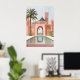 Moroccan Courtyard Art Print Pink Poolside Palm Trees Watercolor