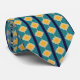 Moroccan green and gold shapes and navy stripes make a colourful necktie