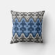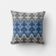 Moroccan Ikat Damask, Blue and Gray / Grey Throw Pillow