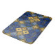 Moroccan Inspired Pattern Quatrefoils Blue Gold Bath Mat