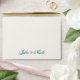 Expectations met; I liked that I had the opportunity to include our address on the back of the envelope. This color matched very well with my save the date. The color was the same as shown above. I had our address labeled on the back of the envelope and the font/printing met my expectations.