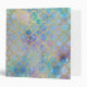 A gold glitter Moroccan pattern against an abstract pastel watercolor opal marble background.