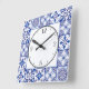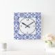 Moroccan Pattern in Blue, White, & Black Square Wall Clock
