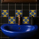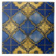 Moroccan Pattern Quatrefoils Blue and Gold Ceramic Tile